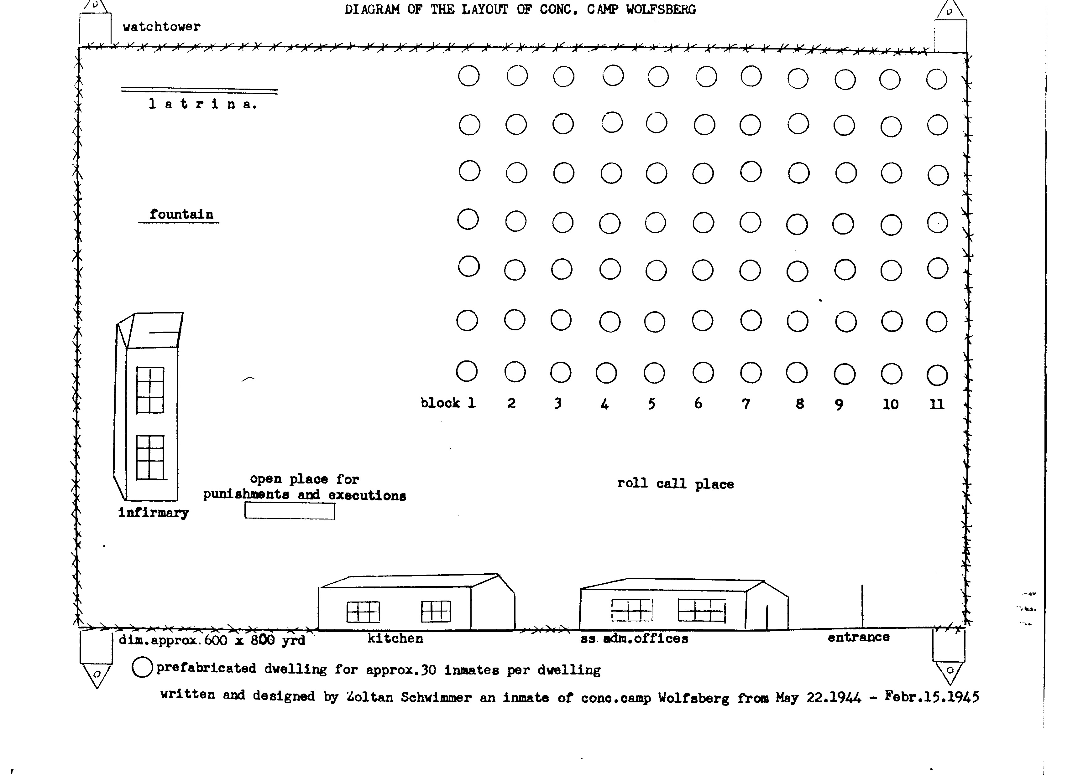 This diagram shows the layout of the Wolfsberg Concnetration Camp as I clearly remember.